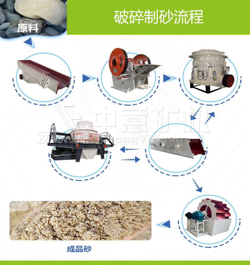 制砂生產(chǎn)線由給料機、粗破(顎式破碎機)、制砂機(細碎機)、洗砂機、篩分設(shè)備和膠帶傳輸機等設(shè)備組合而成。根據(jù)不同的工藝要求,各種型號的設(shè)備進行組合,可以生產(chǎn)出不同粒度的砂石。制砂生產(chǎn)線設(shè)備可用于硬質(zhì)石灰石、花崗石、玄武巖、河卵石、冶多渣等多種物料的骨料及人工造砂作業(yè),適用于水電、建材、高速公路、城市建設(shè)等行業(yè)的應(yīng)用。